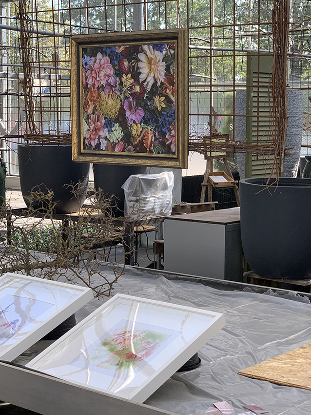 34 Van Dommelen overzicht werken met bloemen in achtergrond