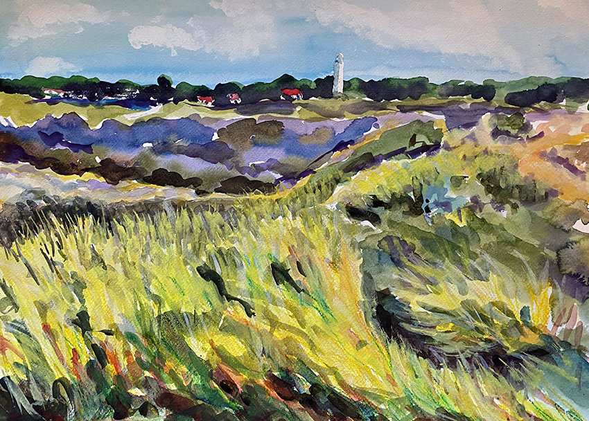 OLYMPUS DIGITAL CAMERA Peter van Tilburg - In het Bos 2023, gemengde techniek, 40x50 Peter van Tilburg - Schiermonnikoog Westerduinen, aquarel 2021, 35x48 Peter van Tilburg - Vier Getijdenwachters Lente-Zomer-Herfst-Winter 2012, bewerkt plaatstaal, 270 x 600 x 250 Peter van Tilburg