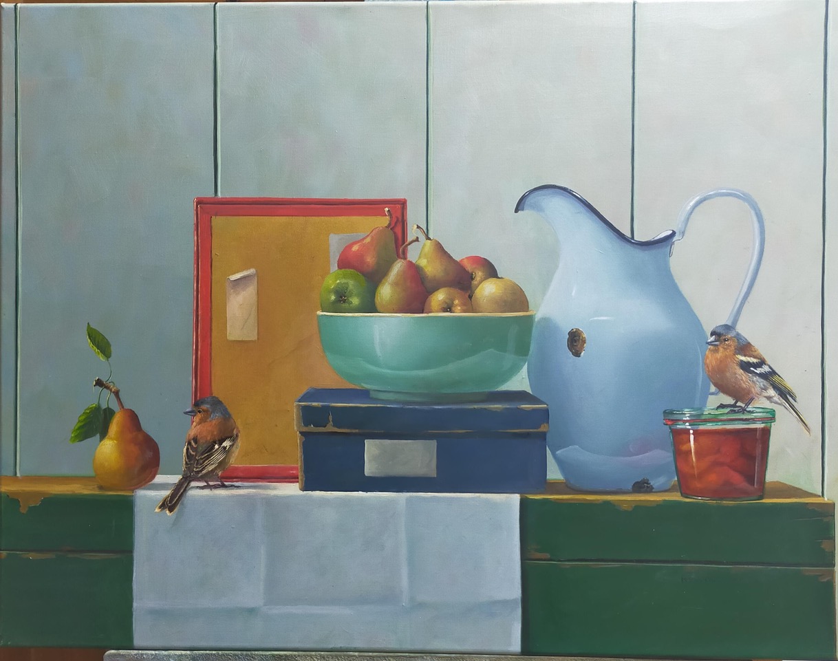 Vier jaar geleden bezocht ik een tentoonstelling van Henk Helmantel in Amsterdam. Zijn stillevens spraken me bijzonder aan waarna ik op zoek ben gegaan naar iemand die mij het oude ambacht zou kunnen leren. Zo kwam ik terecht bij Peter Dillen, een vakman die bovendien de kunst verstaat goed les te geven. Van hem heb ik de fijne kneepjes van het vak geleerd.