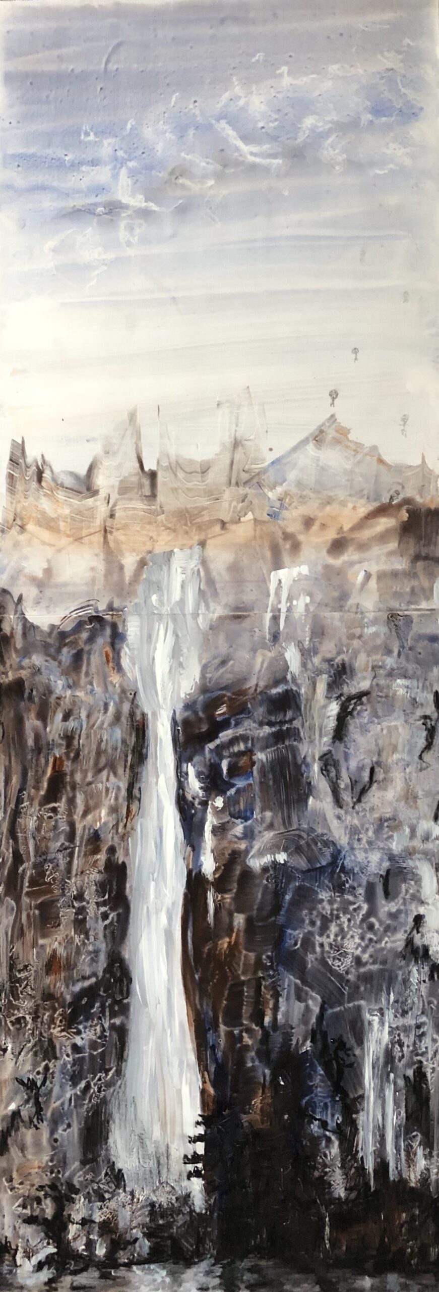 - Chinese tekening van parachutisten boven de waterval