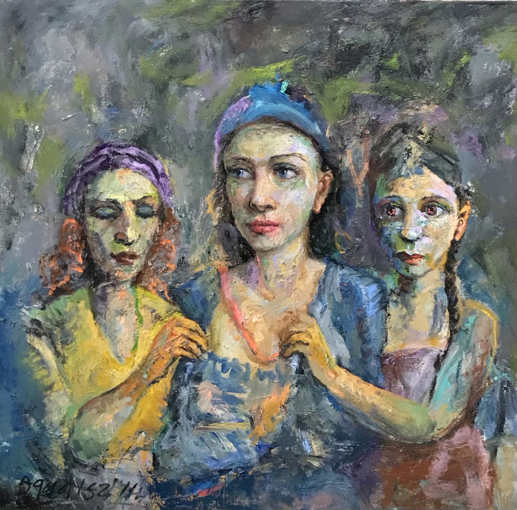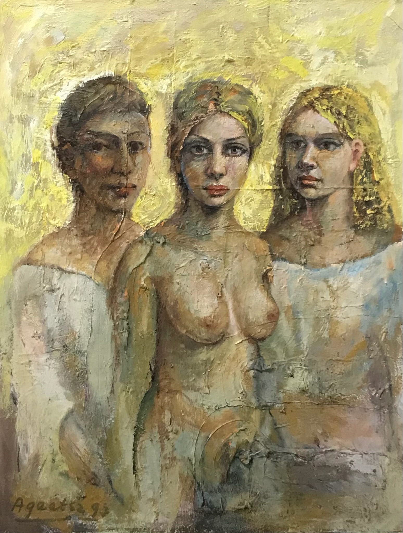 Herinneringen die als beelden zijn opgeslagen in mijn innerlijke beeldbibliotheek worden tijdens het schildersproces aangesproken en zijn mijn bron van inspiratie. Modellen, voorbeelden of foto’s heb ik bewust niet gebruikt, omdat het picturale vrijheid zouden kunnen beperken. De beelden zijn ontstaan tijdens het schilderen.